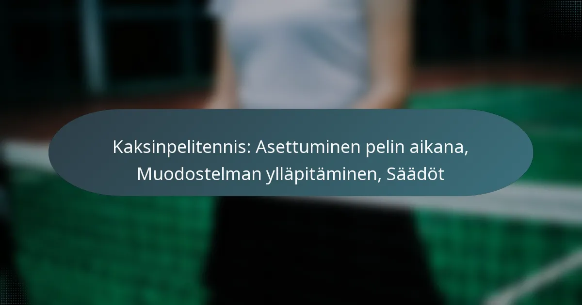 Muodostelman ylläpitäminen paritennismatseissa on ratkaisevan tärkeää tehokkaan tiimityön ja kenttäpeiton kannalta. Pelaajien tulisi keskittyä selkeään kommunikaatioon, määriteltyihin rooleihin ja sopeutumiseen vastustajien strategioihin varmistaakseen, että he pysyvät koordinoituina pelin aikana.